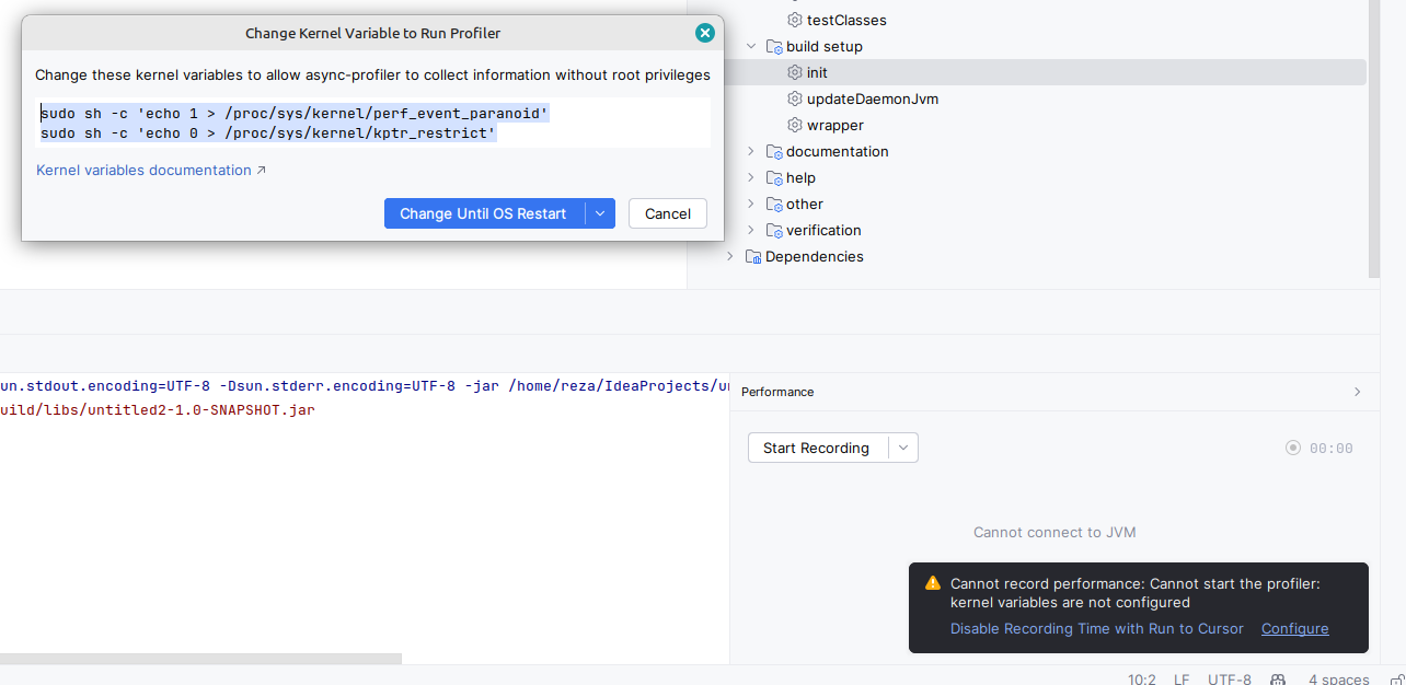 sudo sh -c 'echo 1 > /proc/sys/kernel/perf_event_paranoid' sudo sh -c 'echo 0 > /proc/sys/kernel/kptr_restrict'